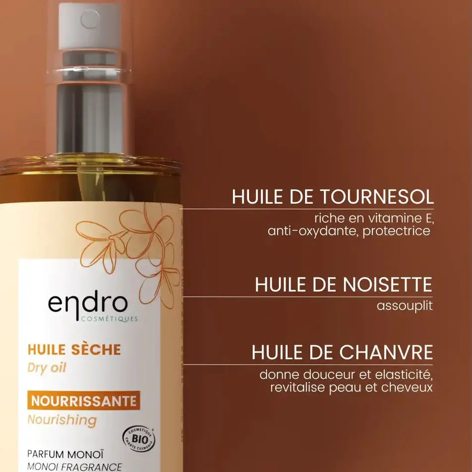 Ingrédients clés : huile de tournesol, de chanvre et de noisette